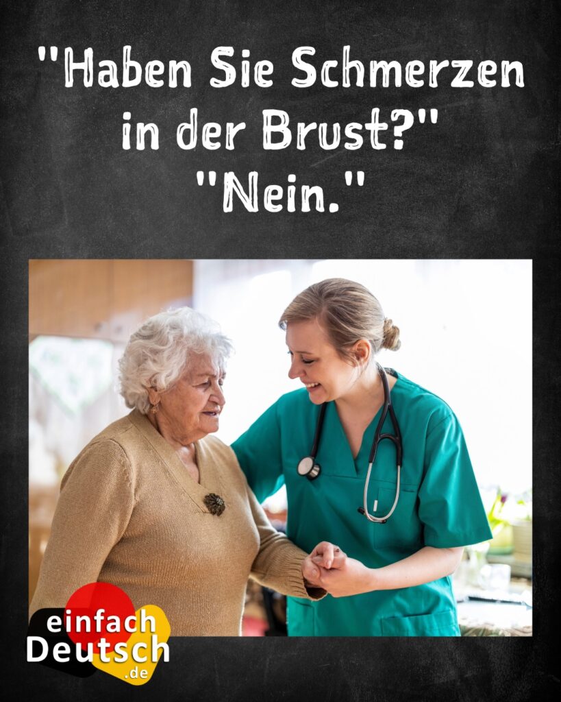 - Haben Sie Schmerzen in der Brust? – Do you have chest pain?